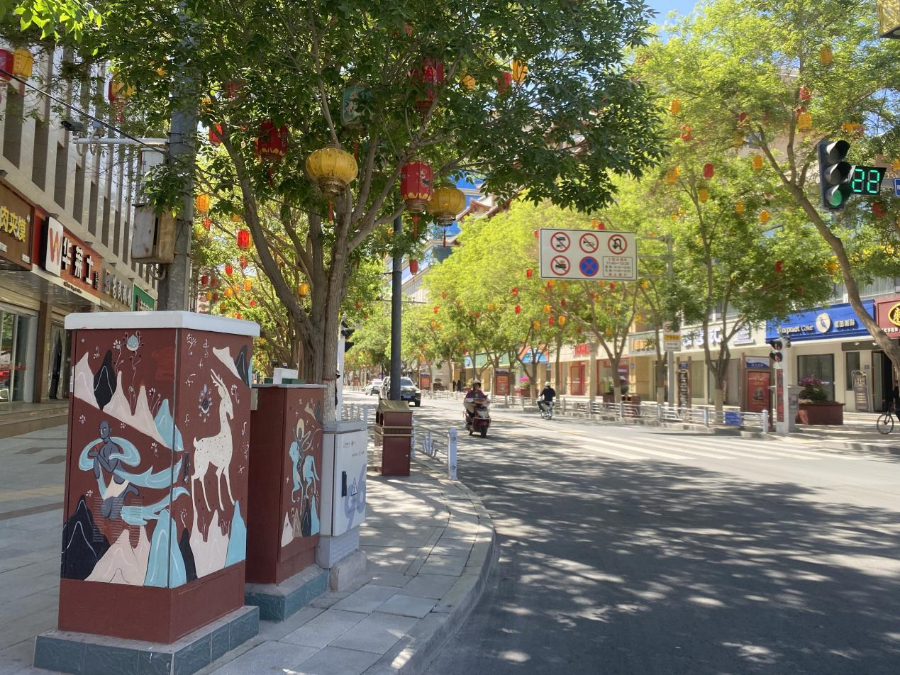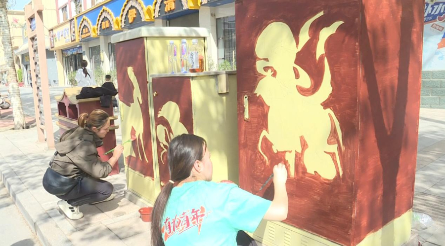 在敦煌市沙州镇兰馨花园小区,原本单调的小区墙面和塑料管等公共设施,在社区干部和居民志愿者的共同创作下,一幅幅精美的画作成为“目之所及皆美好”的温馨港湾。社区干部李红燕说:“以前小区里这些公共设施平平无奇,大家路过都不会多看一眼。但自从开展了这个活动,每个人都热情高涨,积极参与。大家一起调色、勾线、上色,过程中不断交流想法,邻里关系都更融洽了。”