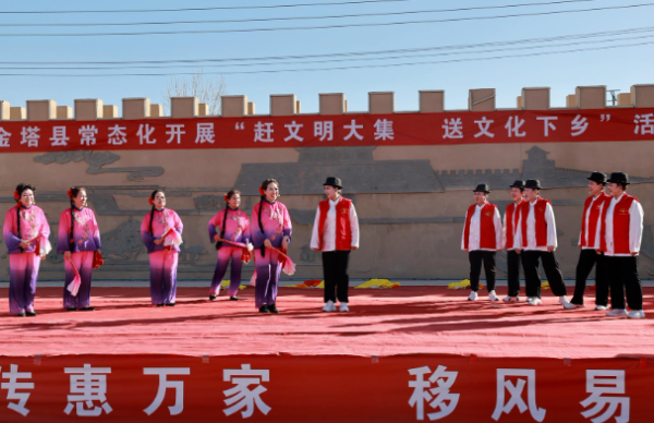 深化“文化惠民+”工程,将移风易俗深度融入“我在新时代文明实践中心过大年”“德润金塔”“公益电影放映”等活动,常态化举办“婆媳互夸会”“家风家训分享会”“丈母娘恳谈会”等800余场特色活动,惠及6.3万人次,营造和谐文明氛围。组建“新风文艺轻骑兵”,精心创作《胡杨林里话新风》《婆媳对夸》《婚俗新风尚》等主题文艺作品20余个,开展巡演786场,吸引7.2万群众参与,让文明新风浸润心田。持续开展“赶文明大集送文化下乡”活动,通过“讲、演、学、颂、传”多种形式,推动文明理念走进千家万户。