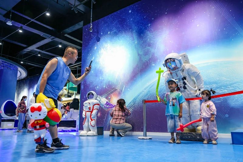 在“科普启智·点亮童心”活动现场,科学与艺术碰撞出绚烂火花。从展现科学家精神的微电影到科普剧《天问》,再到互动实验秀《伯努利原理》《奇妙的静电》,多元形式让科普教育焕发新活力。科普剧《天问》以沉浸式剧场形式,通过光影特效和互动表演,将屈原“遂古之初,谁传道之”的宇宙之问演绎得淋漓尽致,台下的小观众们仰着头,眼睛里映着星空的光影。