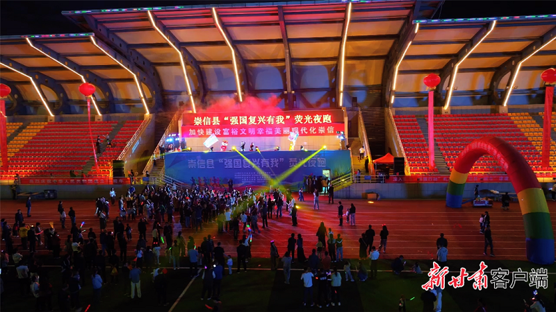 文化“硬件”扎实,“软件”鲜活。崇信县以文体活动为纽带,让城市文化氛围愈发浓厚。每年5月下旬,县城的荧光夜跑会点燃夏日激情:夜幕降临,数百名选手身着荧光装备,从体育中心出发,沿着芮鞫广场的霓虹灯带、凤翥大桥的璀璨灯光、公刘园的绿植景观一路奔跑,成为城区一道流动的“活力风景线”。