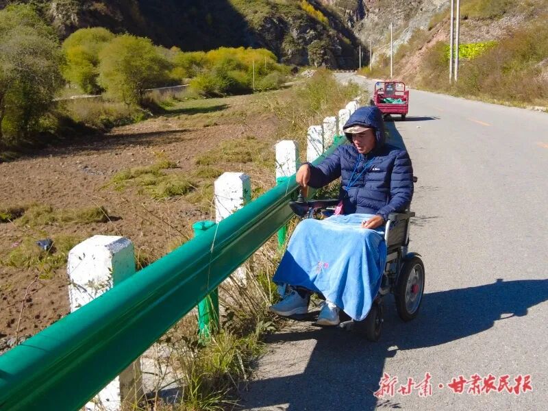 十月的卓尼县藏巴哇镇,秋意已浓,正是采挖药材的农忙时节。笔者在田埂前采访时被眼前的一幕触动:轮椅上的男子正专注地望着不远处躬身劳作的身影——那是他的妻子王孝风和年迈的父母。