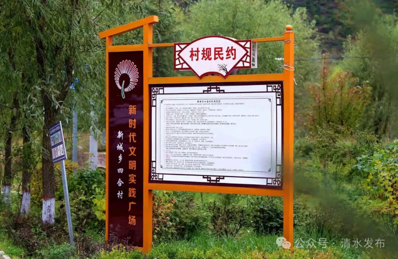 “邻里和睦互帮助,尊老爱幼争模范,房前屋后扫干净,环境优美又卫生……”走进清水县新城乡四合村,墙上醒目位置张贴的村规民约,已成为村民日常生活的“行为指南”,更化作一股清风,吹遍乡村每个角落。在村民方三存家里,老人忙着打扫院子里的落叶,整理刚从地里掰回家的玉米,院内院外都收拾得干净整洁,呈现出一幅乡风文明的新图景。