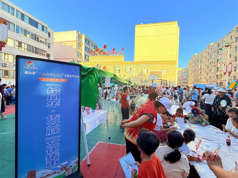 文化集市上,移风易俗小品、秦腔展演轮番上演,剪纸、掐丝画、麦秆画等非遗体验让群众在手工制作中感受文脉传承;文明集市通过“红色高台 文明有我”主题展、家风宣讲等形式,搭配“我为乡亲照张相”“爱心义剪”等接地气的志愿服务,让抽象的理念化为具体行动;亲子集市里,跳房子、投壶等传统游戏与DIY手工坊相映成趣,为家庭陪伴注入文化内涵;共享集市则提供家电维修、旧物交换、直播带货等“一站式”便民服务,9个镇的实践所所长更是化身“助农主播”,推广高台辣椒、沙漠枸杞等土特产,活动首日线上交易额就突破12万元。截至目前,高台县已开展各类集市活动200余场次。这些植根于生活场景的活动,让文明在浓浓的“烟火气”中悄然生长。