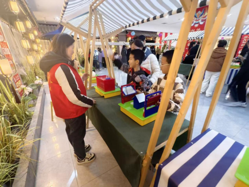 集市上的多元互动环节,更让邻里情谊在欢声笑语中升温。现场设置的“指尖上的非遗”“文明集市”等特色板块人气高涨,居民们围坐一堂制作非遗剪纸,在一针一线、一剪一刻中感受传统文化的温度;志愿者穿梭其间,开展趣味游戏互动与政策宣传,用实际行动传递邻里互助的温情。活动特别推出“暖心礼包”兑换活动,居民通过参与科学实验、政策问答等环节抽奖,换取保温杯、抽纸等实用物品,将“惠民属性”与“趣味体验”深度融合,让文明实践转化为共建共享的生动实践。