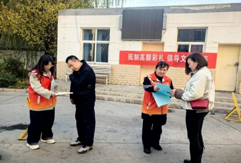 年轻人纷纷晒出旅行结婚、集体婚礼的温馨照片,分享简约背后的浪漫。线下,志愿者们则在小区门口挂起醒目标语,带着宣传彩页跟往来的叔叔阿姨们“谈心”。“咱嫁闺女是结亲家,不是‘卖’闺女,孩子们过得好比什么都强。”这样推心置腹的交流,让“抵制高额彩礼”不再是一句冰冷的口号,而成了一份来自实践站的温暖关怀。传统婚俗与现代价值观的融合,不仅为居民带来了全新的文明体验,更成为推动婚俗新风的有力引擎。