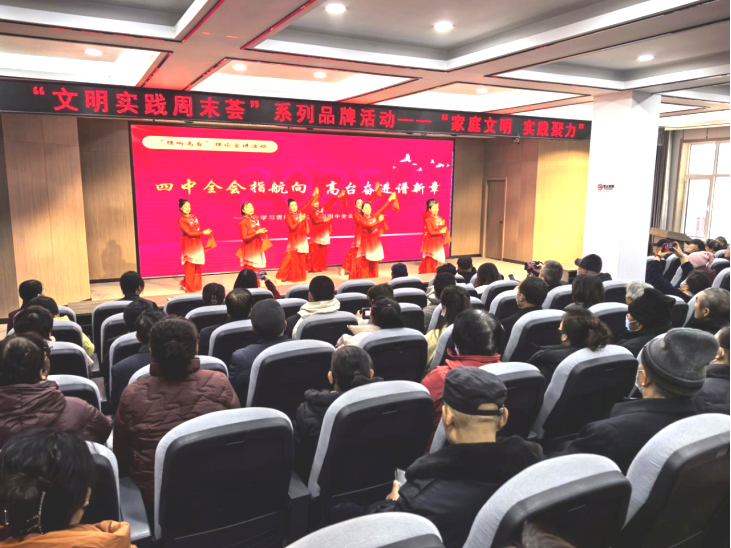 上午9时,东苑社区新时代文明实践站宣教中心座无虚席,“理响高台”理论宣讲率先开讲。县文化馆工作人员以快板《奋进高台谱华章——党的二十届四中全会精神宣讲快板》为载体,将政策要点融入朗朗上口的唱词,用鲜活生动的案例和通俗易懂的“家常话”代替枯燥说教,让政策理论入脑入心。“用快板讲政策太新鲜了,唱词押韵、道理直白,比光听讲座有意思多了,党的二十届四中全会的精神要点我一下子就记住了。”市民张淑玲的称赞道出了现场群众的心声,台下掌声与喝彩声此起彼伏。随后,专家学者宣讲队成员李永贤围绕“坚持人民至上,书写时代答卷”主题展开宣讲,从群众关心的民生保障、社区治理、乡村振兴等热点话题切入,用“身边人讲身边事、身边事映身边理”的方式,将“人民至上”的理念与群众的日常生活紧密相连,让理论宣讲既有“高度”更有“温度”。