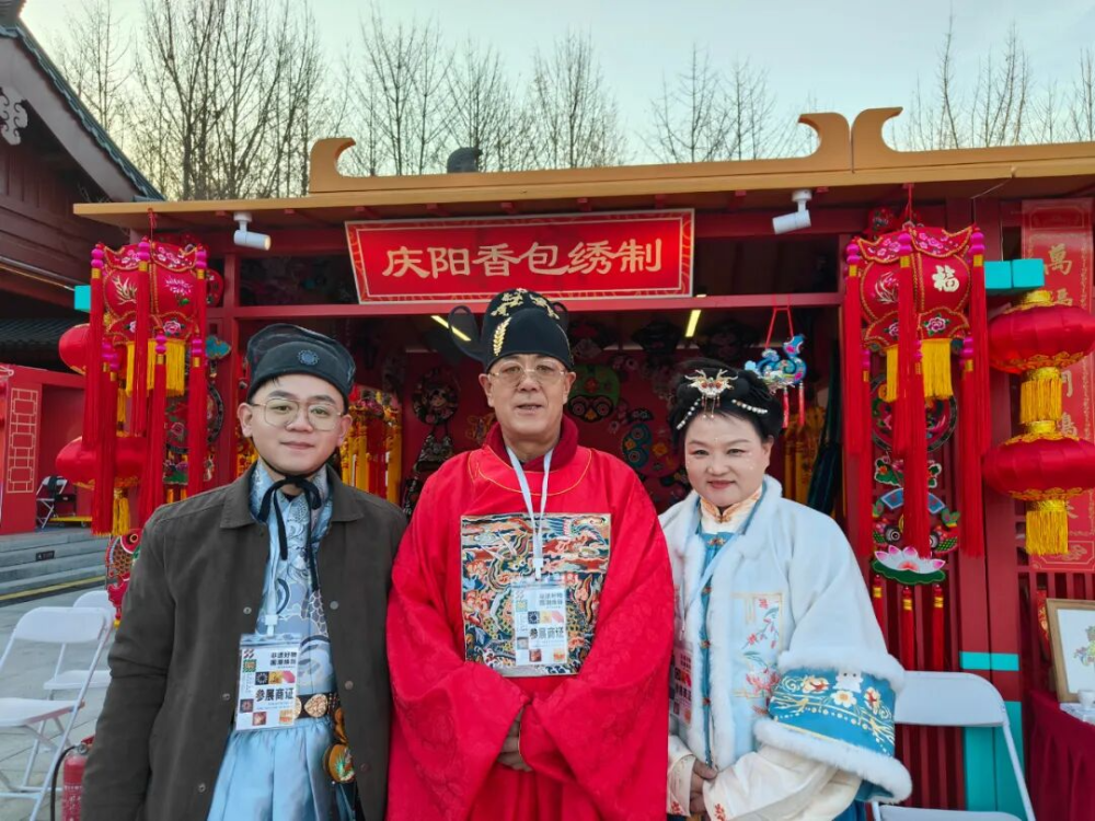 刘兰芳家庭在文旅部非遗司主办的全国“非遗大集”活动现场展出庆阳香包。