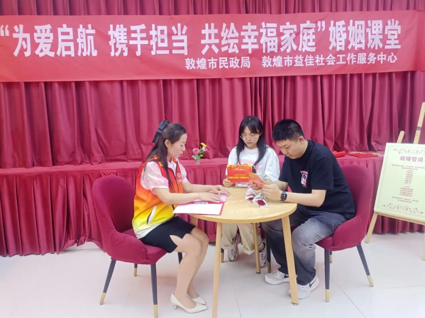 同时在全市范围内积极组建“红娘帮帮团”志愿服务队,为辖区单身青年免费提供婚恋咨询、牵线搭桥等服务,成为敦煌婚恋服务领域的重要力量。依托“敲门嫂·邻里亲”新时代文明实践志愿服务项目,志愿者深入社区、村镇,结合新风大讲堂、院落恳谈会等形式,向群众宣讲文明婚恋理念,破除高额彩礼、大操大办等陈规陋习,引导群众摒弃“重物质、轻感情”的婚恋误区,树立“风雨同舟、相濡以沫、责任担当、互敬互爱”的婚恋观,让“低彩礼、简办事、重情义”的理念深入人心。