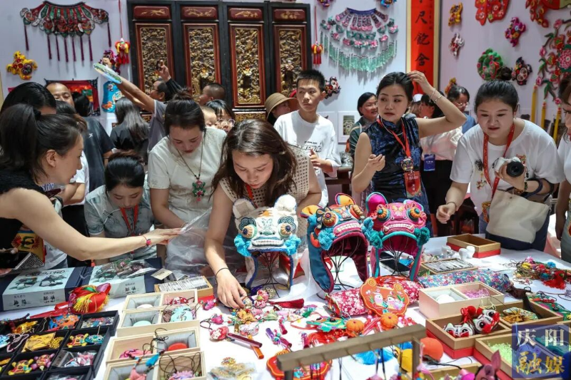 2025年5月29日至6月2日,第二十届庆阳香包民俗文化节盛大举行,游客正在选购香包。