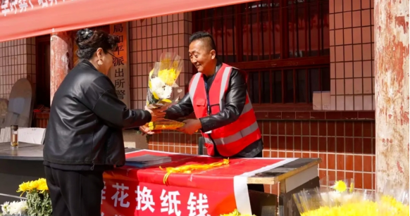 春风送暖,清明将至。为传承慎终追远的传统文化,倡导绿色低碳、安全文明的祭扫新风,切实防范清明期间森林草原火灾风险,守护县域生态环境与群众生命财产安全,兰州市榆中县公安局、县应急管理局、县民政局、县林业和草原局紧扣森林草原防灭火与移风易俗工作要求,联合开展“鲜花绿植换纸钱”文明祭祀主题活动,以实际行动引导群众转变传统祭扫观念,筑牢清明期间森林草原防火安全屏障。