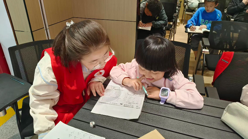 活动紧扣立德树人根本任务,构建课业辅导+思想铸魂+法治安全+非遗美育+素质拓展五位一体关爱体系,精准对接未成年人成长需求与家长周末托管急难愁盼问题。首场活动聚焦基础学业护航与红色思想引领,志愿者团队为到场未成年人提供作业督促、疑难讲解、学习习惯指导等精准课业服务,帮助夯实学业基础、培养自主学习能力;同步开展红色经典阅读分享、爱国故事宣讲等活动,厚植未成年人爱党爱国情怀,传承红色基因。活动现场,来自甘肃政法大学公共管理学院的志愿者毛利伟表示,“希望通过我们的点滴付出,为孩子们的健康成长保驾护航,助力他们成长为有理想、有道德、有文化、有纪律的新时代好少年。”